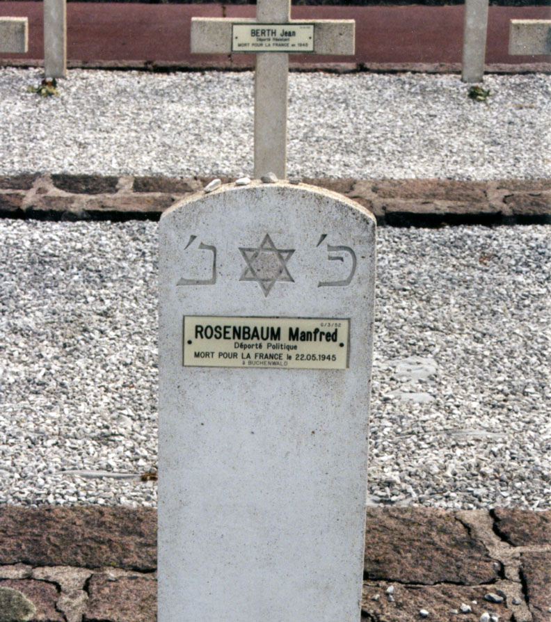 ( 3 / 15106 )The inscription reads:"Manfred Rosenbaum, political prisoner, died for France, on May 22, 1945, at Buchenwald." Photo and text Copyright Diana Mara Henry.