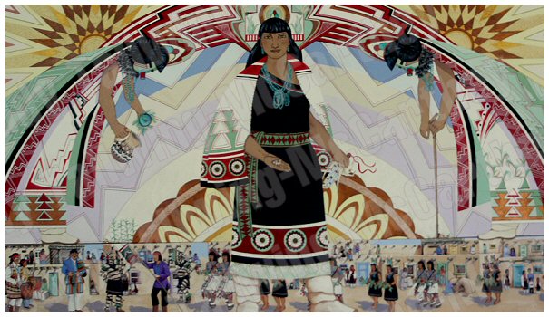 Judy Tallwing McCarthey, artist, in 1977 and in her art...