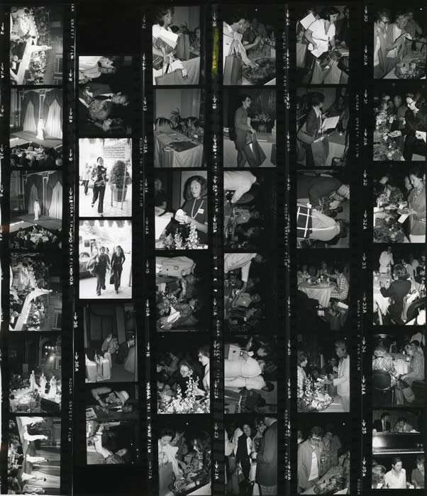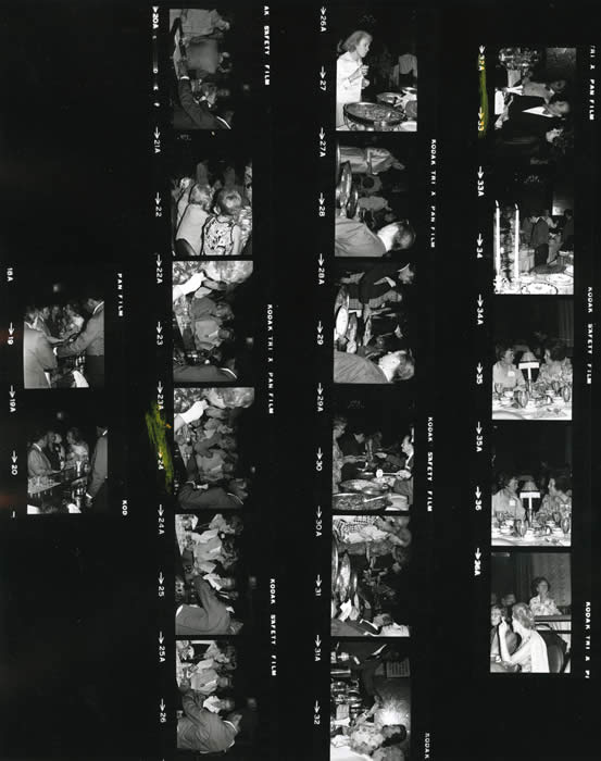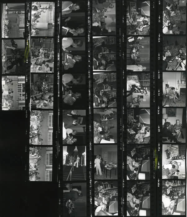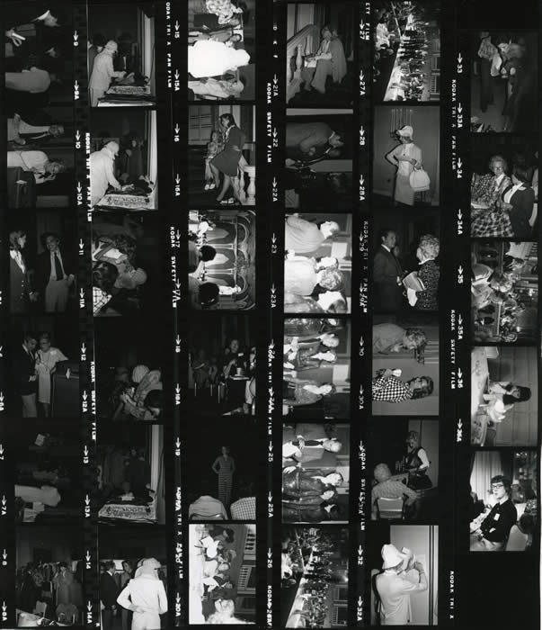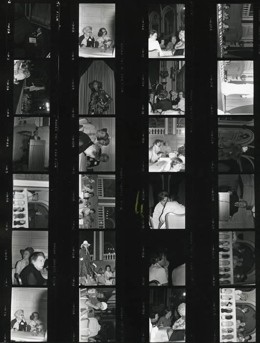 Boys and girls, a contact sheet was made in the darkroom by placing the film directly onto photographic printing paper. No editing has been done to this shoot- every photograph is preserved for you to enjoy and help identify! We know there are photographs here of Anne Klein and Vera Gawansky. Please email us now if you want to view a larger version of these.