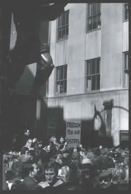 Bettye Lane in solidarity with the women of Iran, December, 1979. Gloria Steinem at right. Photographs Copyright © 1979 Diana Mara Henry. No reproduction without written permission. Email us now
