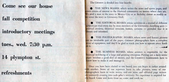 One of two recruiting ads for the Crimson featuring DMH, here with James Glassman