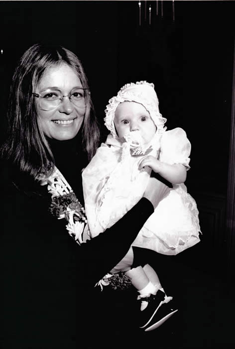 GLoria Steinem at the White House, holding Baby ERA, daughter of delegate Judy McCarthey
