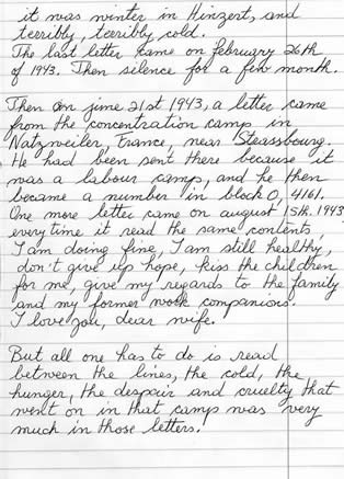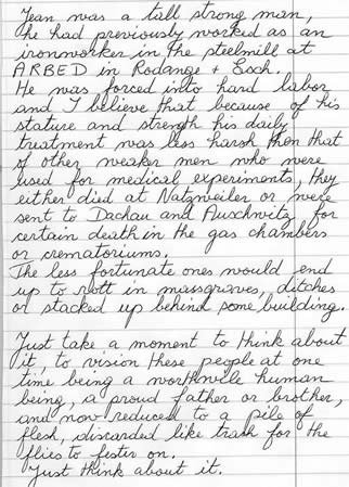 Please see "A wife's heartache, a mother's pain" by Jeanne Schmit: starts mid-way down the page here. To contact Jeanne Schmit: Email here Back to Natzweiler-Struthof HOME To share your Natzweiler-Struthof documents and memories, please email here. Thank you. |