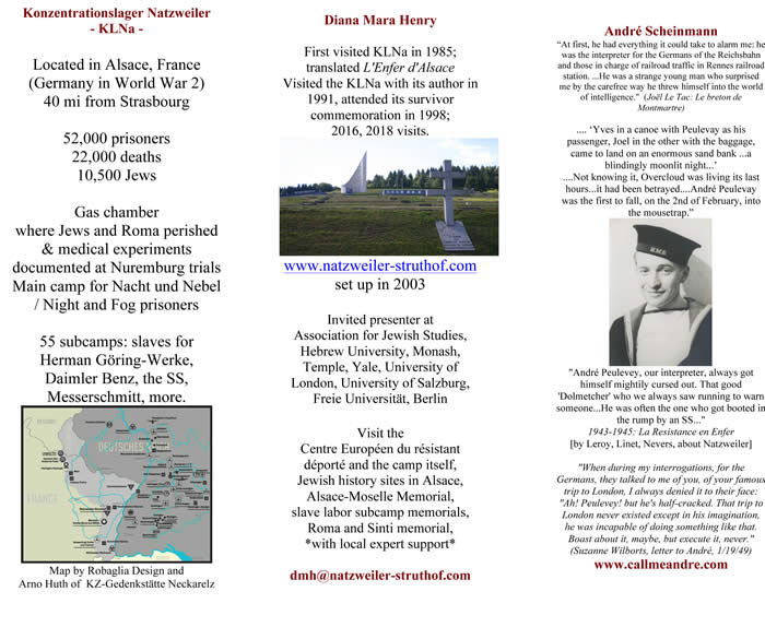 Copyright and Terms of Use Back to Home for Natzweiler-Struthof Call Me André: Freedom Fighter and Spy for the Resistance email us: dmh@dianamarahenry.com