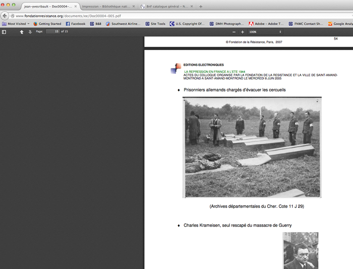 Enfin, le grand-père, Brunschwig Armand, né le 2/4/1902 à Loerrach (ou Neuf Brisach, in CDJC ), était précipité vivant avec 35 autres juifs (dont un couple de ma famille, Levy Salomon et Meis Mina d'Ingwiller) près de St Amand Montron (18200 = Cher) dans les puits de Guerry par la Milice française et la Police allemande !! C'était en Juillet 44!!