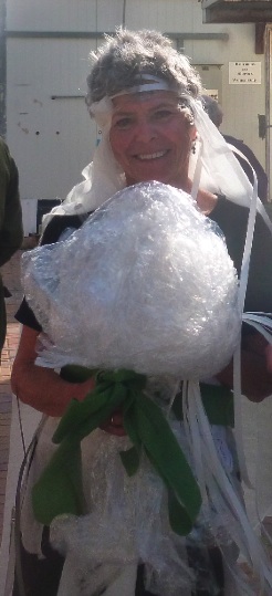 We ate with the soldiers at lunch but only a few of the guards at Breakfast and dinner, as this is a base where the soldier population (unlike us) is there mostly during working hours. Actually, I can’t say the base…just the part of it we were in, which was a locked area within the vast perimeter. It is the medical base for all Israel’s armed forces. We unpacked boxes of supplies that might have expired items, searched and destroyed those ( saline, bandages etc.) and repacked into wooden chests, boxes, and backpacks, to go back to the medics in the field. We only worked about 5 hours a day, some more, but we were told the economic benefits of our volunteering are tremendous. And as mostly type A personalities, we worked like dogs. Our “clubhouse” room had a library of books left, fridge, coffee maker, microwave, and treats everyone contributed, as well as a flat-screen TV where we could catch Seinfeld or CNN or the Discovery channel. Mostly people gabbed and the US veterans swapped tales. Helped a veteran of 16 trips dress for Purim as a bride - in all the discarded strapping tape and broken gauze and unwrapped tourniquets ( better not to visualize any of this stuff in use) and acted as her “Bridesmaid” with some of the same but far fewer acoutrements, including a “bouquet” or pink and white labels and a scissors, wrapped in a gauze bow. Pretty! She won a pair of earphones. I got the fun of seeing her so excited and happy